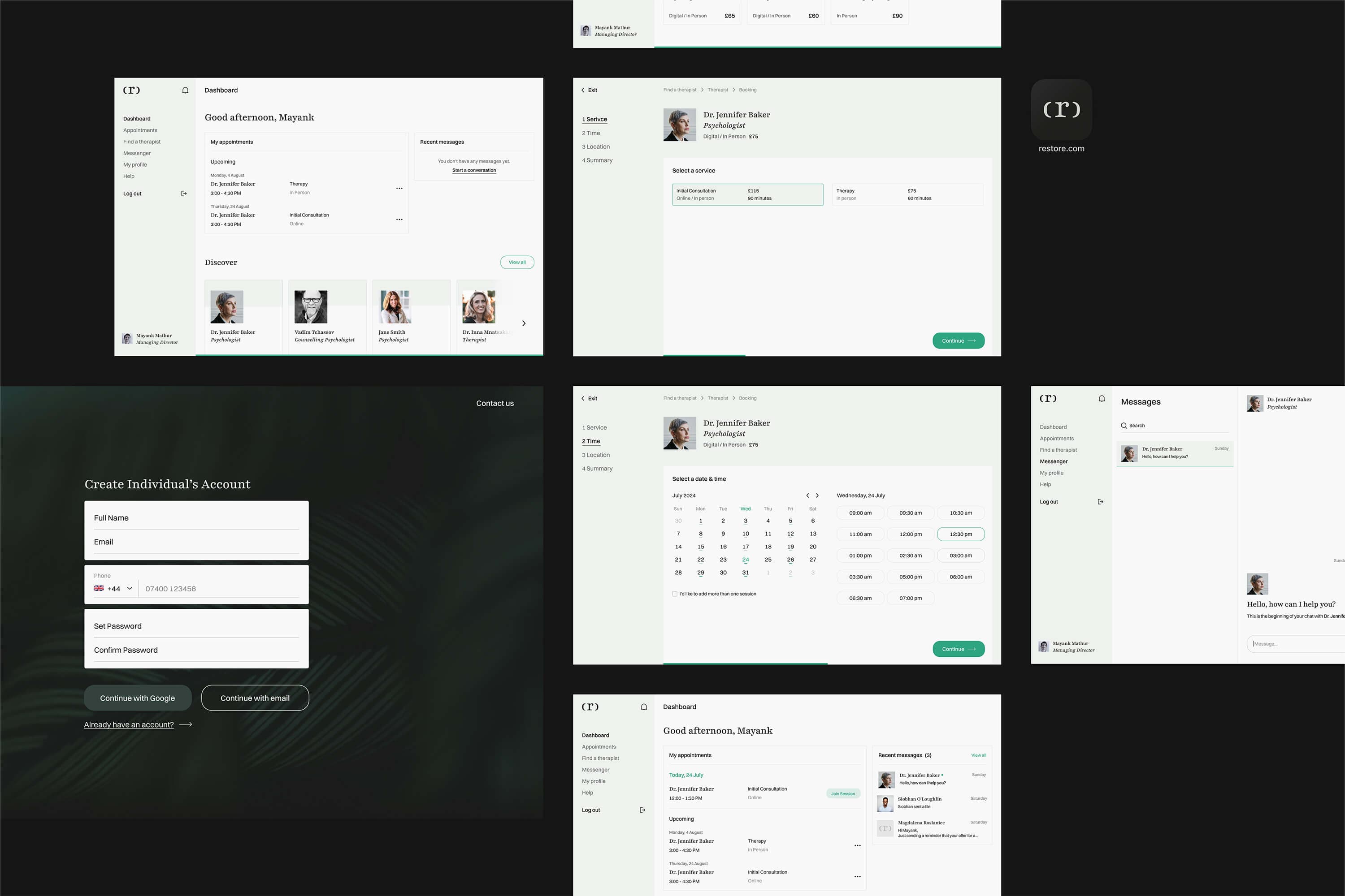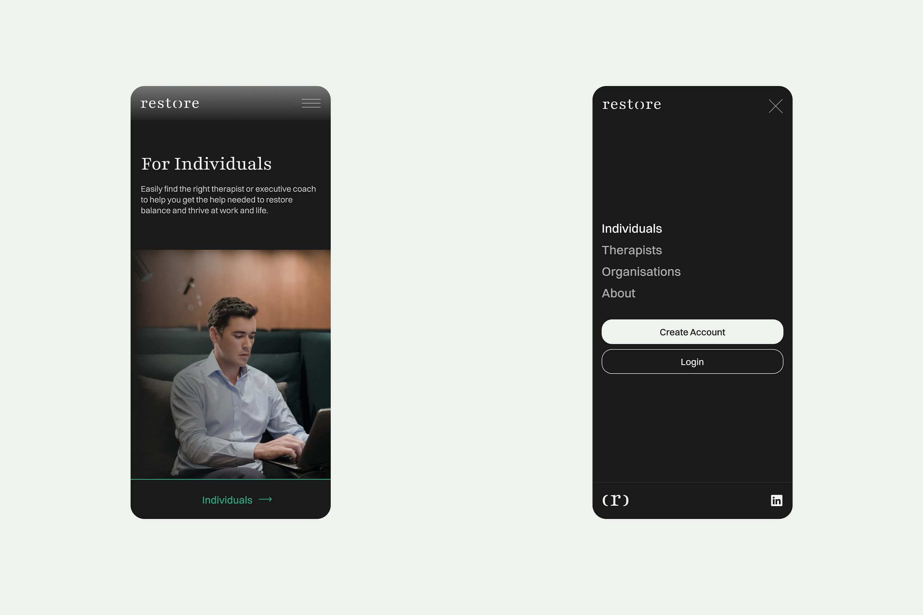 Rather than introducing just another therapy platform, Restore reframes how high-performing individuals understand and integrate mental wellness into their lives. As brand strategists and designers, we set out to reframe support as strength, and position care as a natural extension of leadership.